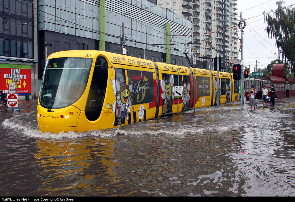 There’s some wonderful irony in this snapshot taken in some floodwaters along Clarendon Street in Melbourne, Australia. “Get on board!” the car beckons, while the tram cuts through the standing water, pushing waves in every direction. There’s a bit of resilient humor everywhere in the composition, especially when you read the road signs.